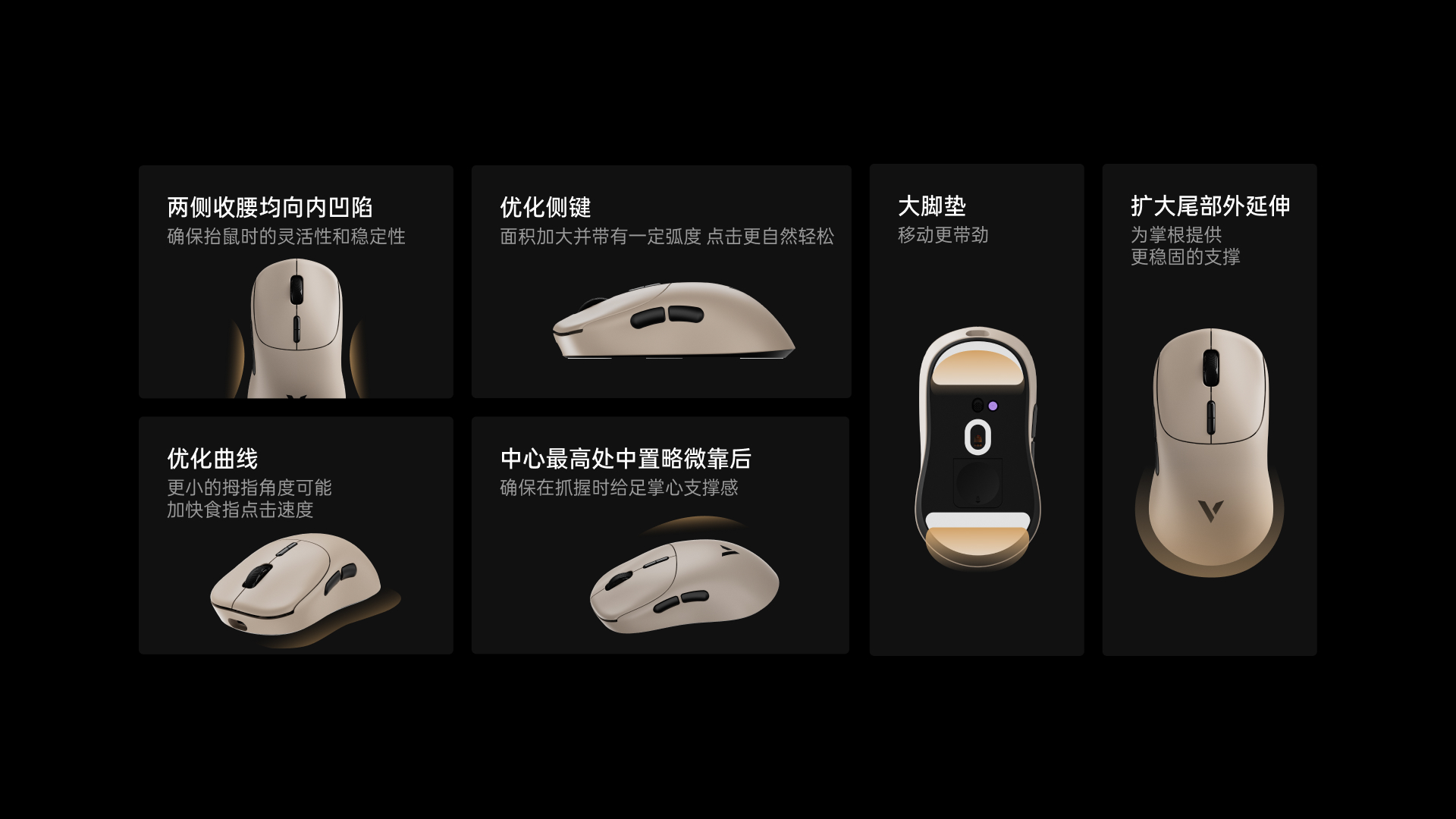 抓握,兼容部分指握,约55±2克轻量化设计(基于黑色款,不含接收器与收纳仓盖)