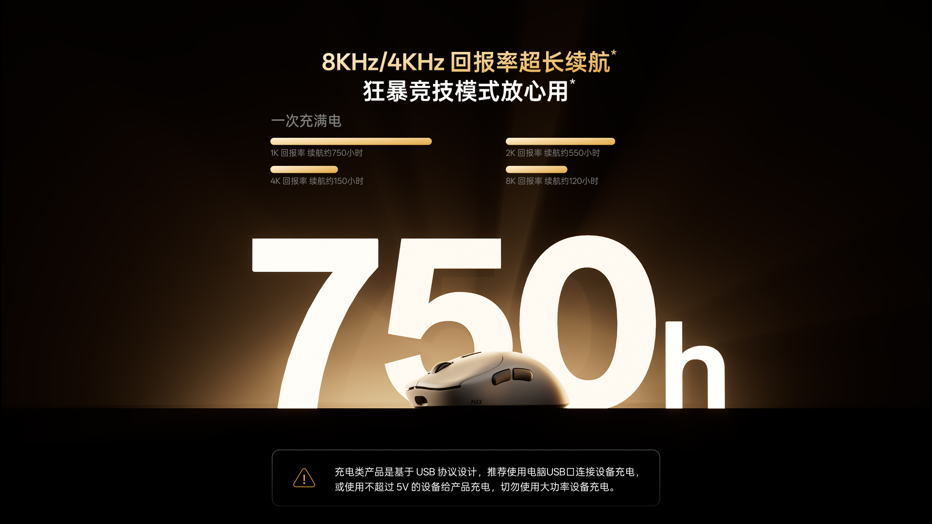 内置800毫安时锂电,1000Hz回报率满电量连续使用至高约750小时
