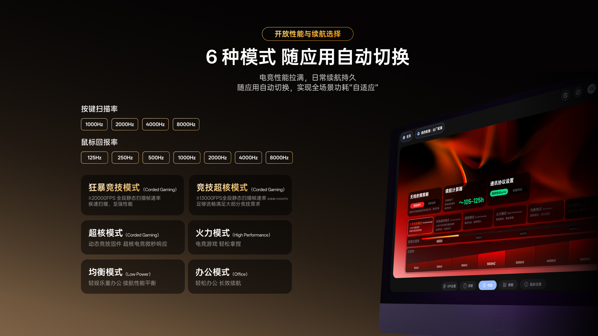 狂暴竞技模式(≥20000FPS光学引擎静态扫描帧速率,疾速电竞,高功耗)