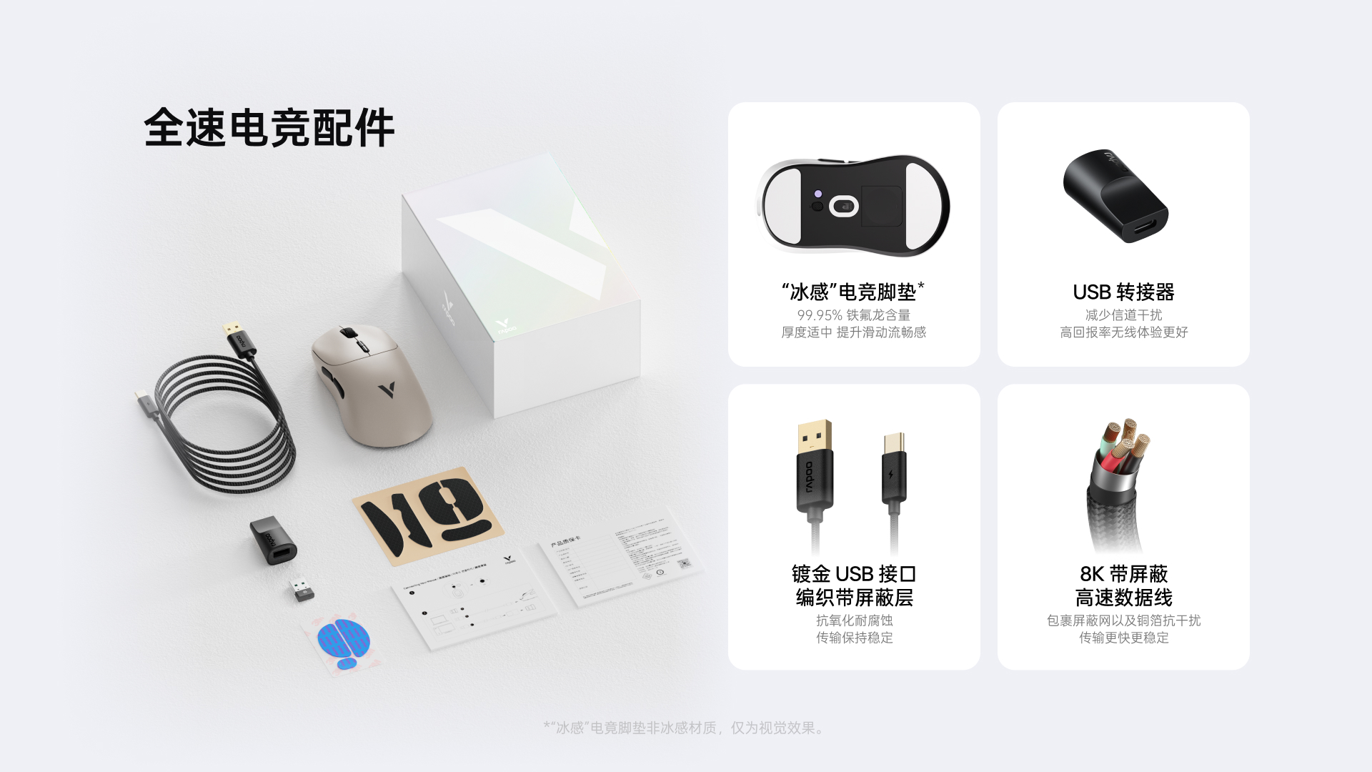 "冰感"PTFE特氟龙(含量99.95%)电竞大脚垫 | 8K带屏蔽和镀金接口的高速编织线
